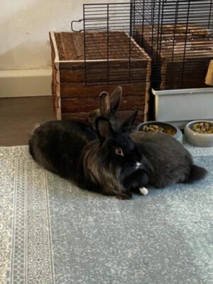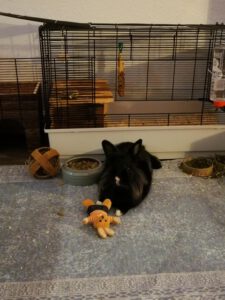 Vermittlungshilfe, 4 Jahre, Morty hat seinen Weg zu mir über den Tierschutz gefunden. Er kam als kleines Wesen aus dem Ukraine Krieg nach Deutschland, dank ganz lieber Menschen! Ich habe ihn 2022 zu meiner nun leider zu früh verstorbenen Häsin geholt, und Morty war bei der Vergesellschaftung total klasse. Er hat ihr ihren Raum gegeben, Abstand gehalten, aber war immer in der Nähe um ihr Sicherheit und Vertrauen zu vermitteln. Es hat nicht lange gedauert und die zwei waren ein Herz und eine Seele. Das wünsche ich mir für Morty noch einmal! Er ist nicht nur sozial; er ist auch sehr pflegeleicht. Menschenkontakt mag er nicht allzu gerne (dann versteckt er sich); man muss in Ruhe auf ihn eingehen. Fellpflege ist bei ihm als Löwenkopf natürlich wichtig. Er mag es nicht gerne, lässt es aber über sich ergehen (mit ein paar Fluchtversuchen). Das Fell trägt deutlich mehr auf, als er eigentlich auf den Rippen hat. Er frisst Trockenfutter, Heu, Stroh, am liebsten aber Romanasalat. Er hat tatsächlich einen sehr geregelten Tagesablauf entwickelt, bei Neuem ist er zwar neugierig und erkundet sehr gerne, wird jedoch nie wild. Mir liegt viel daran, dass die Hoppel einander gernhaben und sich verstehen. Sollte eine Vergesellschaftungen also schwierig/verhindert sein, kann Morty jederzeit zurückkommen. Danke, auch von Morty.