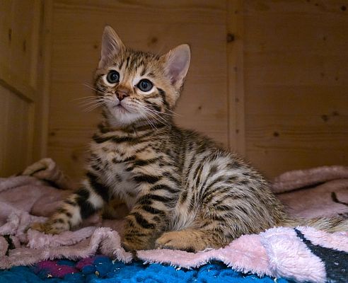 Unsere Bengal-Scottish-Fold-Mixe sind wirklich zum anbeißen süß! Sie wurde am 03.09.25 geboren und sind Ende November bereit, auszuziehen. Wir vermitteln die Kleinen entweder zu zweit, mit ihrer Mutter Mimi oder zu einem vorhandenen Jungstier.