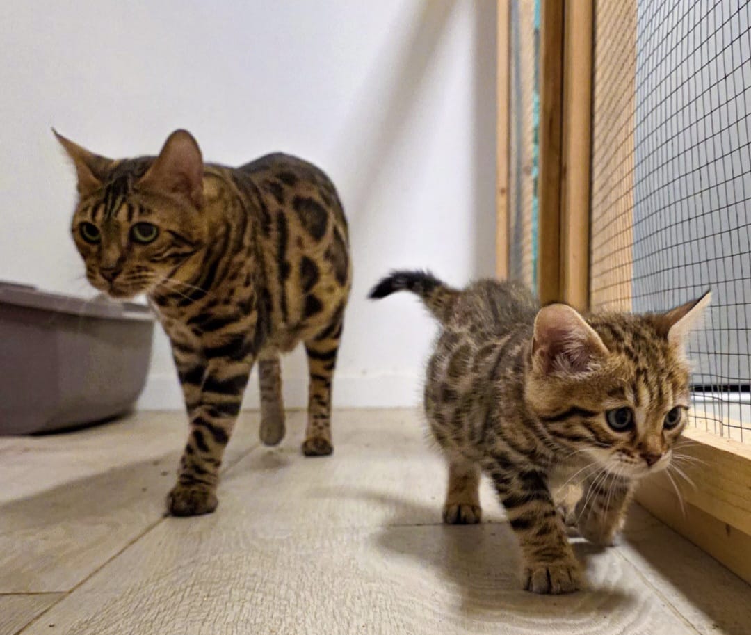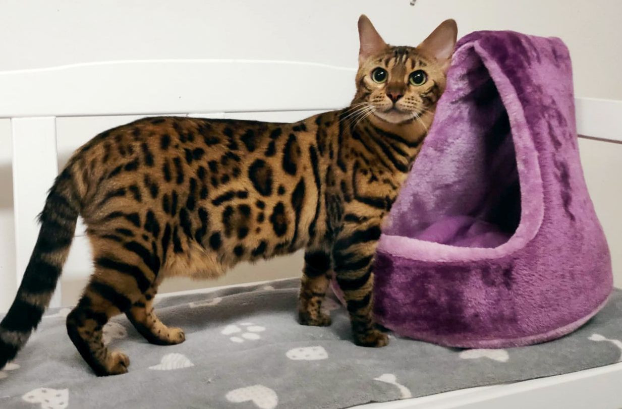 Mimi, die zweijährige Bengalin, kam schwanger zu uns. In der Sicherheit ihrer Pflegestelle konnte sie ihre 10 Babys zur Welt bringen, von denen aber leider nur 5 überlebten. Nun hat sie ihre Kleinen liebevoll großgezogen und ist jetzt bereit für ihre zweite Chance auf ein artgerechtes und glückliches Leben.