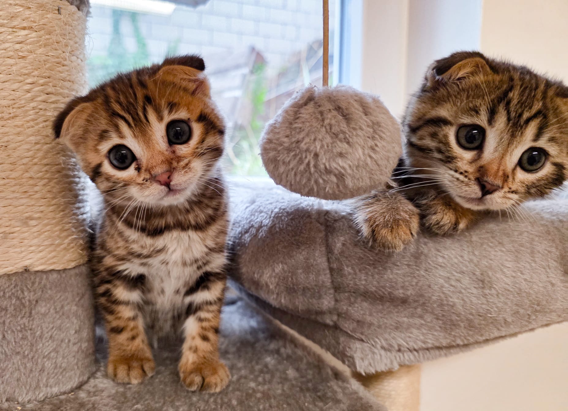 Unsere Bengal-Scottish-Fold-Mixe sind wirklich zum anbeißen süß! Sie wurde am 03.09.25 geboren und sind Ende November bereit, auszuziehen. Wir vermitteln die Kleinen entweder zu zweit, mit ihrer Mutter Mimi oder zu einem vorhandenen Jungstier.